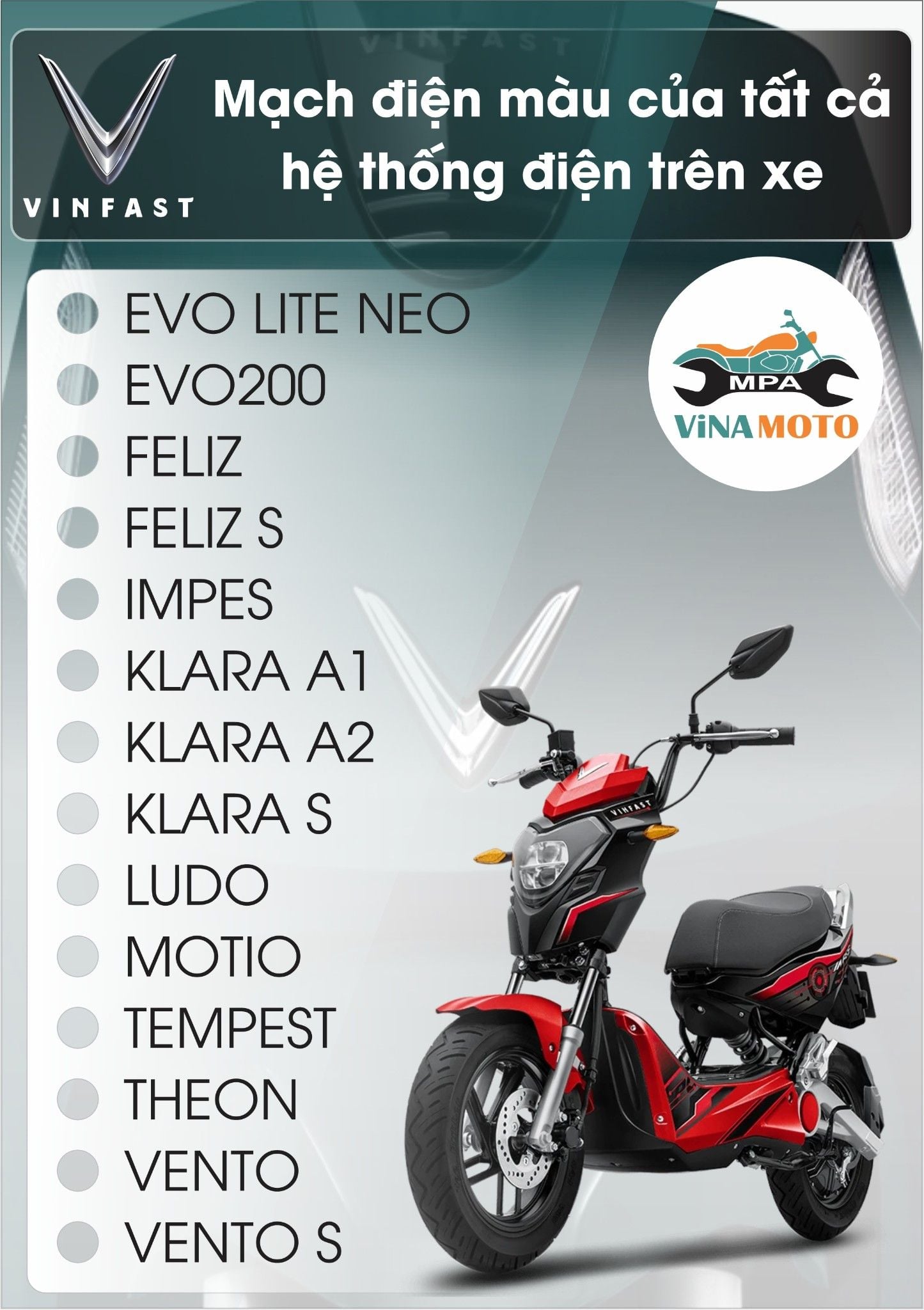 Các mẫu xe điện VinFast như Klara, Feliz, Klara S, Evo 200… được thiết kế với hệ thống điện phức tạp hơn nhiều so với xe xăng truyền thống. Mỗi dòng xe đều có mạch điều khiển pin, bộ sạc, mô-tơ, hệ thống phanh tái sinh, ECM, VCU và CAN BUS.
